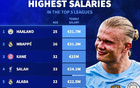 五大联赛年薪排名:哈兰德3170万欧居首,姆巴佩3130万欧第二