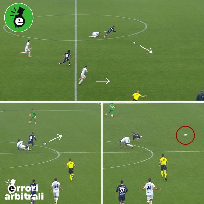 尽管直播的镜头并没有交代清楚,但我们看回放的时候仔细观察:犯规发生时,皮球正在快速的向由左向右运行,方向是偏向边线的方向的,而非正面球门的方向。